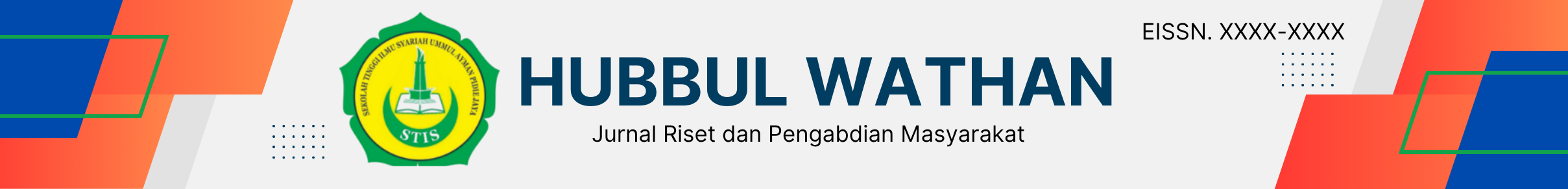 Hubbul Wathan merupakan jurnal riset dan pengabdian masyarakat yang berisi hasil-hasil kegiatan pengabdian dan pemberdayaan masyarakat berupa penerapan multi disiplin keilmuan diantaranya hukum, hukum keluarga islam, hukum ekonomi islam, pendidikan agama Islam, sosial humaniora, komputer dan kesehatan dll. Pengabdian kepada masyarakat berisi berbagai kegiatan penanganan dan pengelolaan berbagai potensi, kendala, tantangan, dan masalah yang ada di masyarakat. Pelaksanaan kegiatan pengabdian juga melibatkan partisipasi masyarakat dan mitra. Kegiatan pengabdian tersebut disusun dalam suatu kegiatan yang bertujuan untuk meningkatkan kesejahteraan masyarakat. Jurnal Hubbul Wathan terbit dua kali dalam setahun, yaitu Juni dan Desember. Jurnal Hubbul Wathan terdaftar di BRIN dengan E-ISSN: