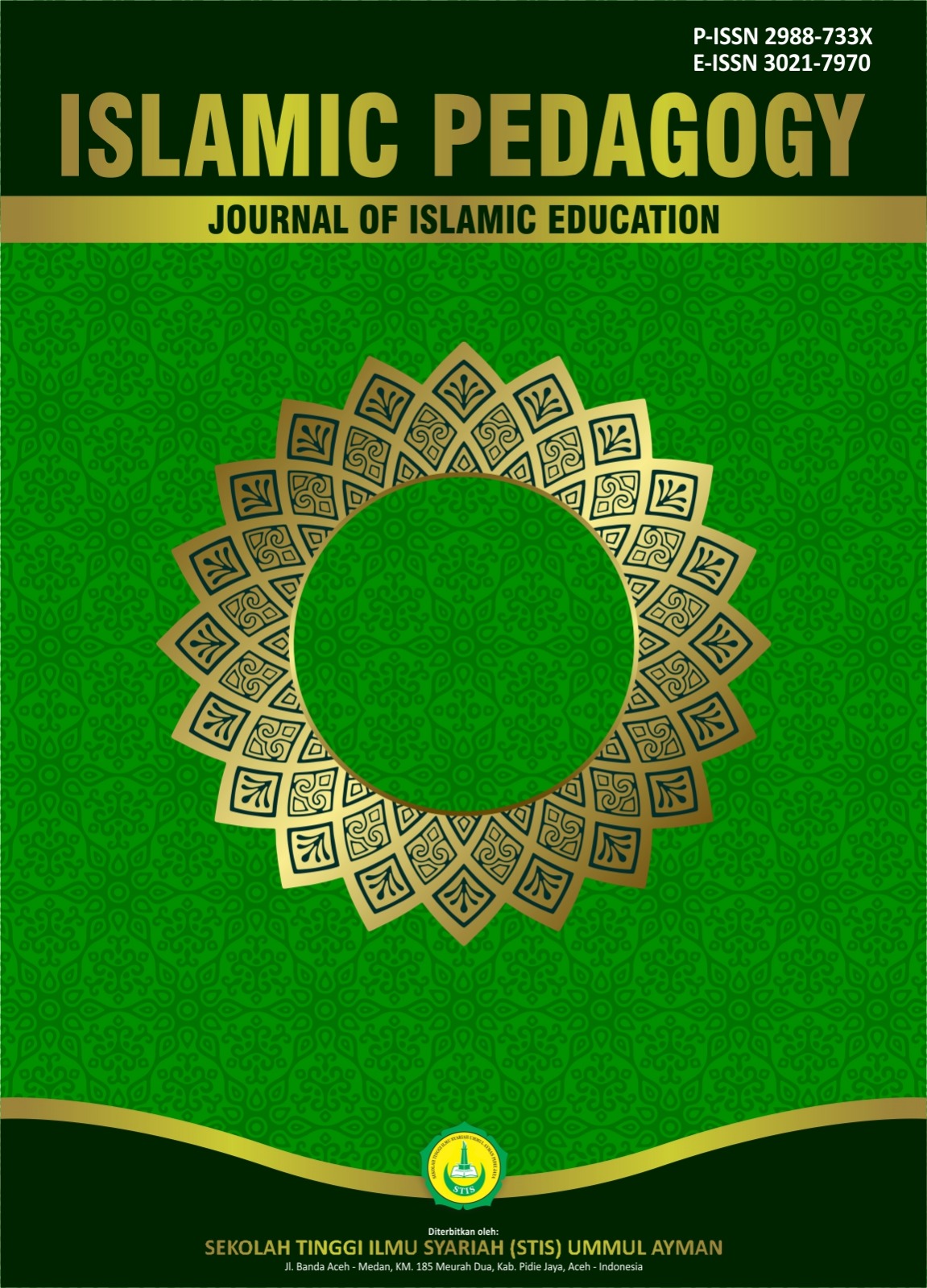 ISLAMIC PEDAGOGY: Journal of Islamic Education (P-ISSN 2988-733X; E-ISSN 3021-7970) is a peer-reviewed journal published by the Research and Community Service Unit (UP2M) at the Sekolah Tinggi Ilmu Syariah Ummul Ayman Pidie Jaya.